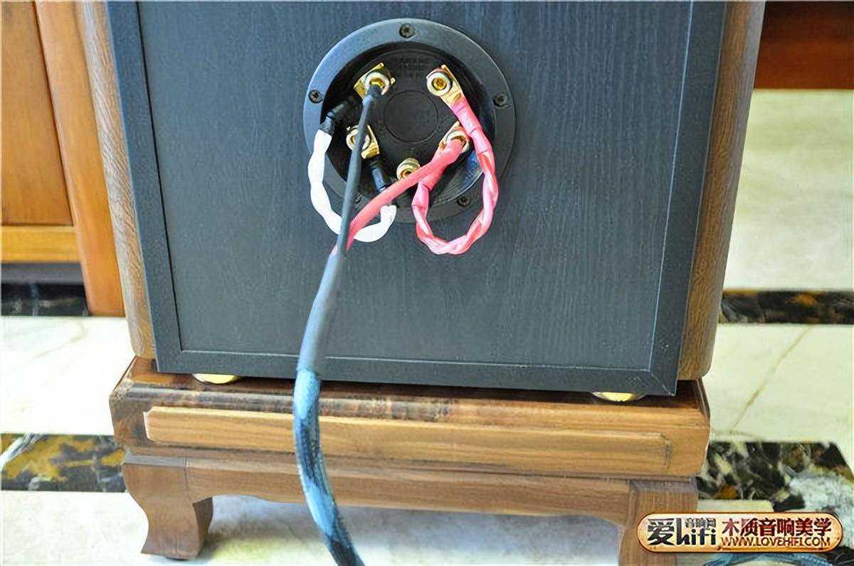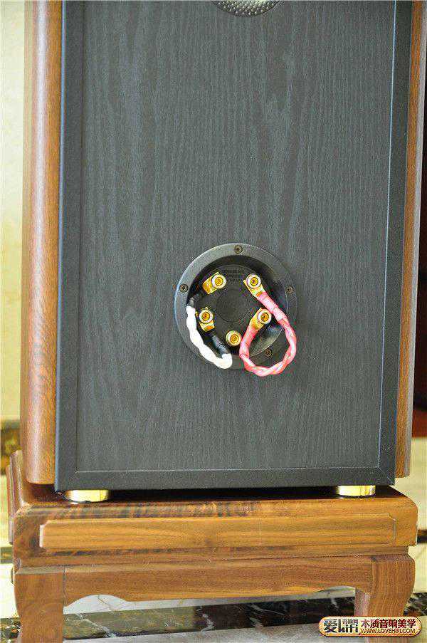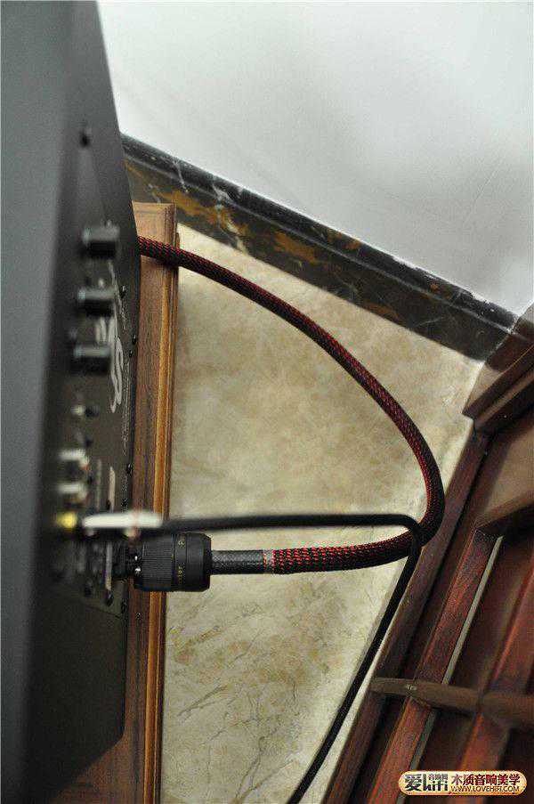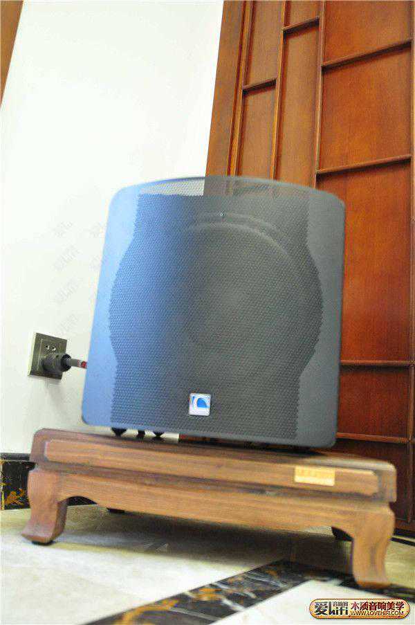 (四)低音炮线,这个是没有方向性的,放哪里就会在那里发挥作用。因为我的地下装了地暖,因此地面不够坚实。这就是为什么我给歌剧一号和低音炮都加了胡桃木脚架,一是想避免虚空地,使箱子工作时更扎实,二来也是进一步美化箱子,红花还需绿叶配,三呢还间接地美观了我的客厅。