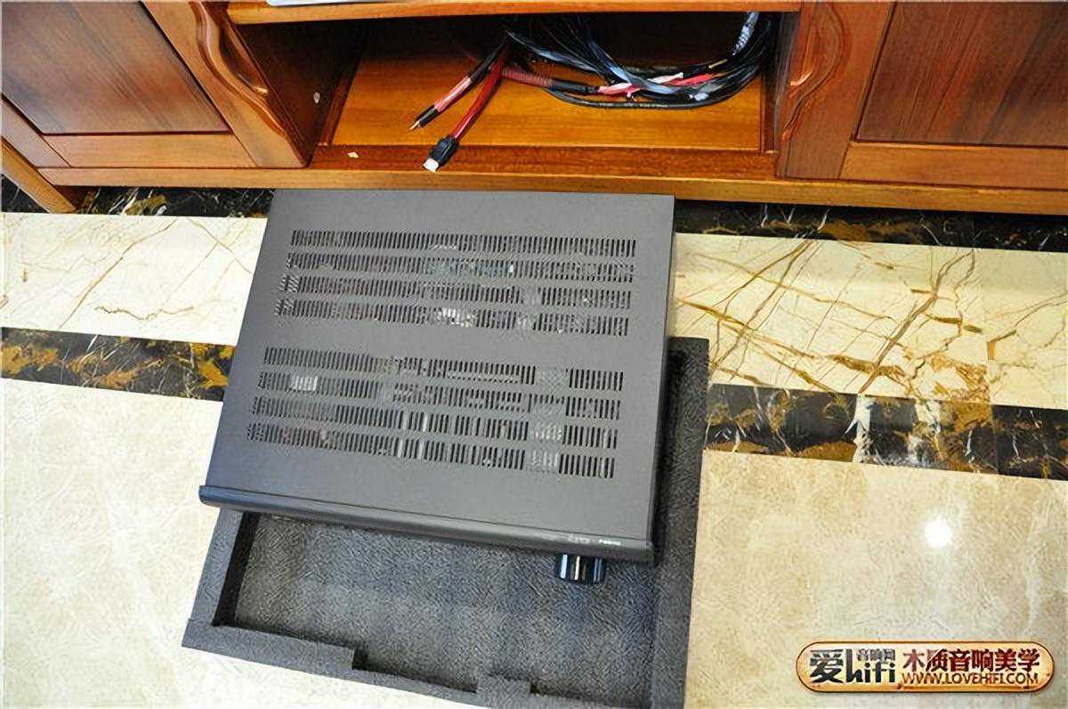 同样,考虑到电视柜虽然是用实木做的,但毕竟箱子在工作时是有震动的,声音开大时电视柜间接成了共鸣导体了,所以就有箱子与柜子之间垫上大理石,以从物理隔断。使中置的声音更加清澈,吐字清晰,对白干净利落。