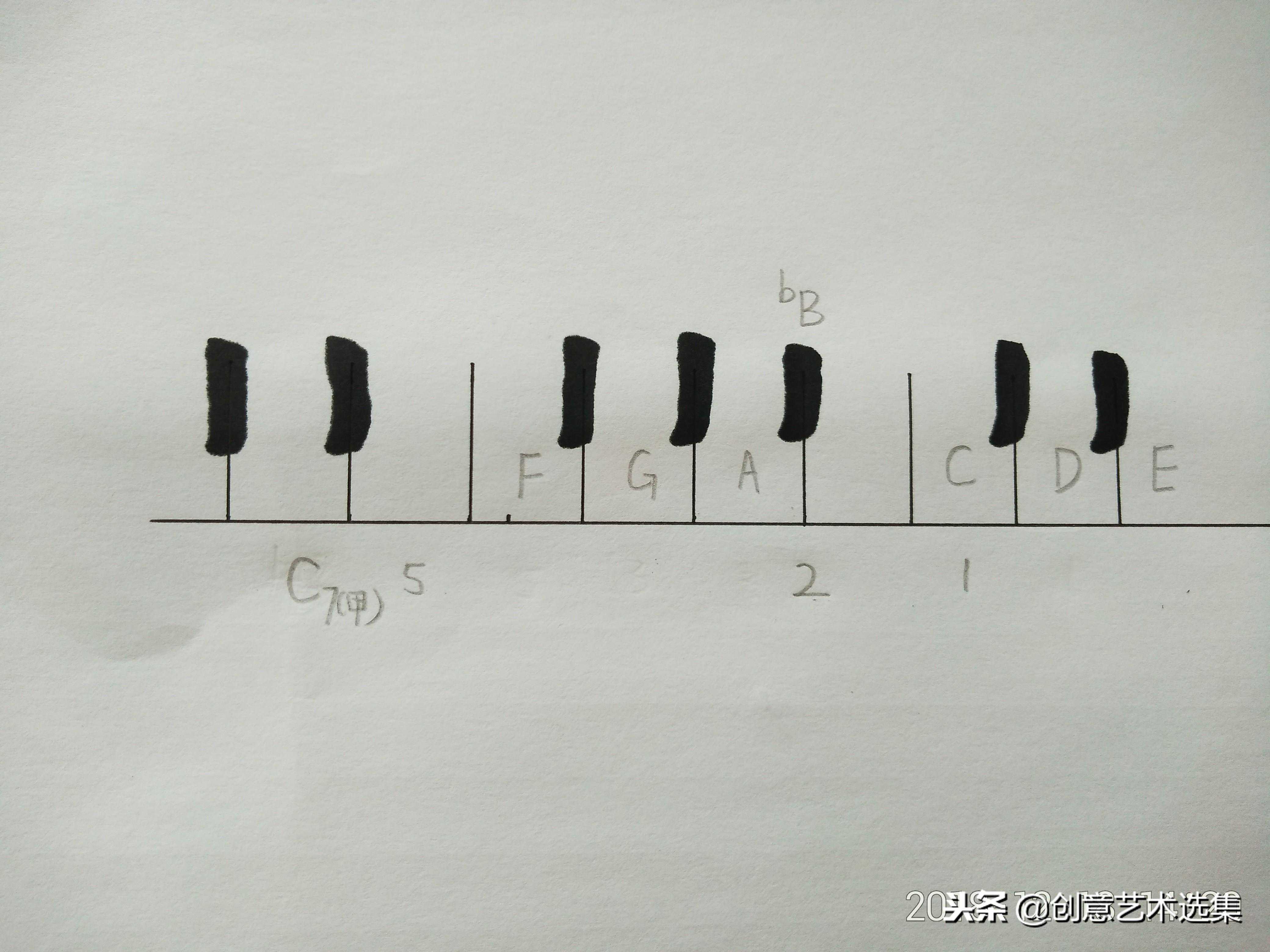 如图所示,F大调的音阶是:F、G、A、bB、C、D、E