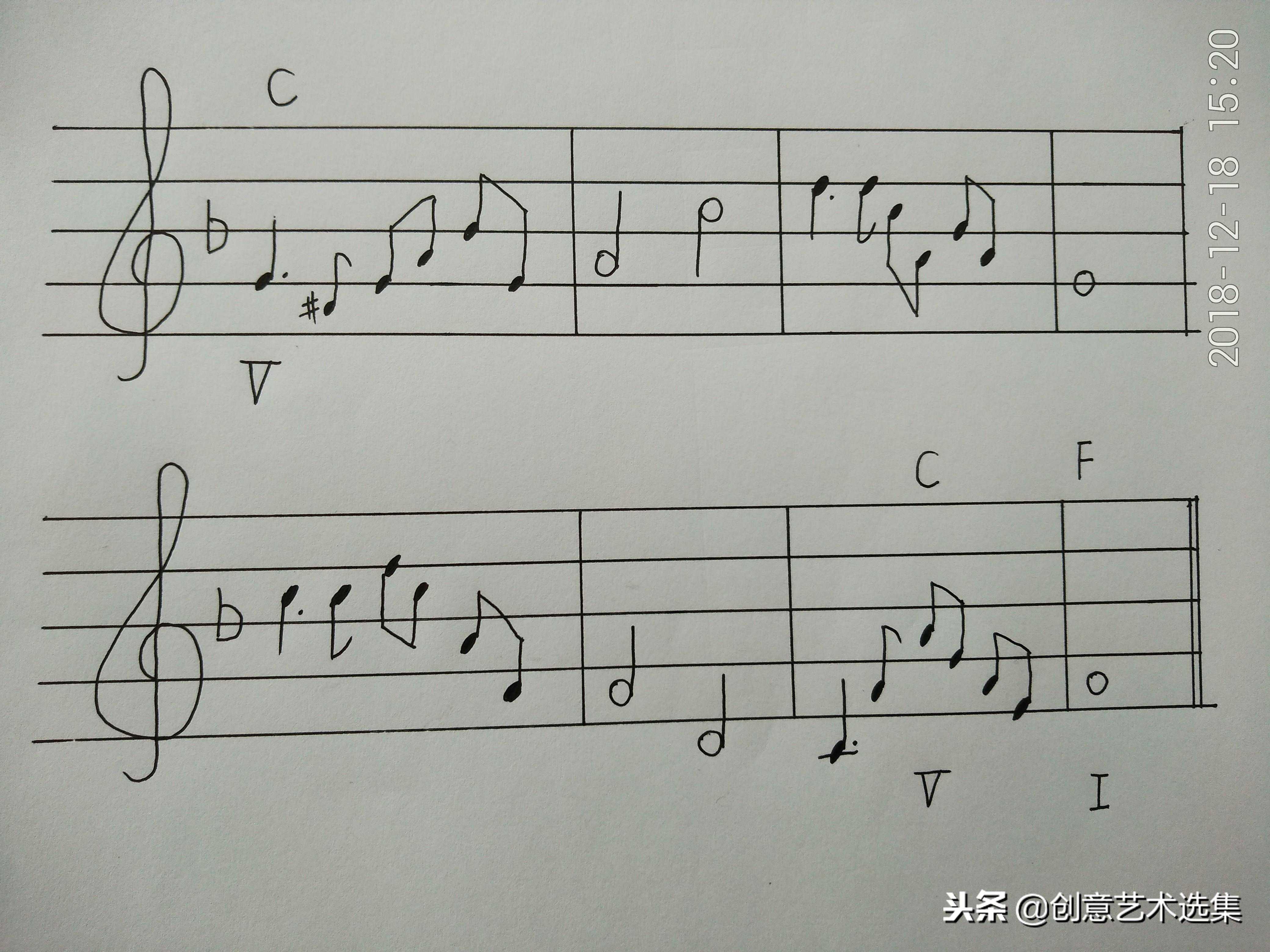 后两小节则是与第四行的一样,可以直接抄上来,或者你也可以根据终止式之后乐句的终止来做。