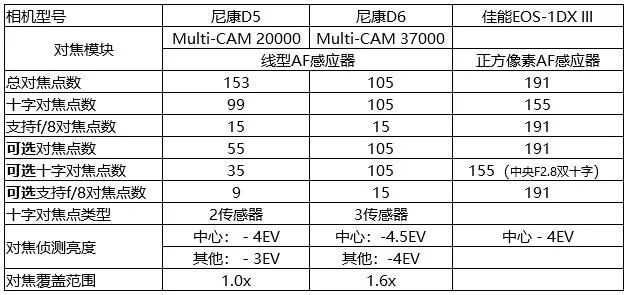 D5和D6对焦模块对比