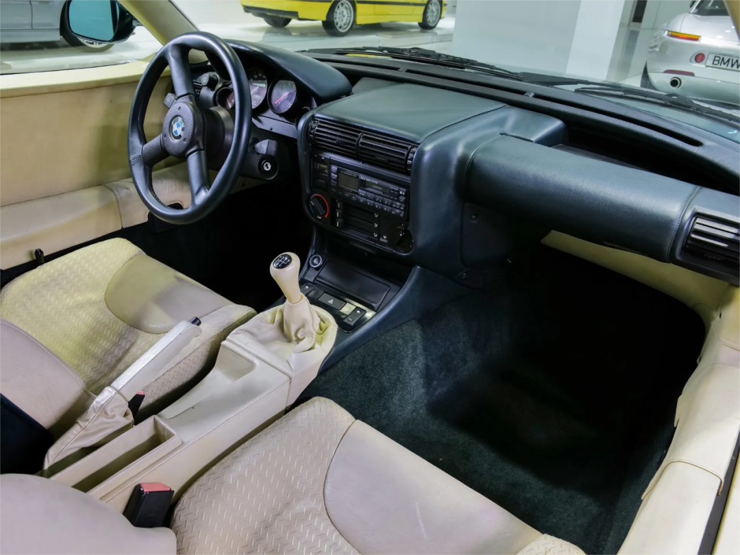 E36M3大家也很熟悉了,S50直六取代了S14,到1995年,五速变速箱被六速取代,发动机排量增加到3201cc,同时输出功率增加到321PS。这台车生产于1997年11月18日,配备达喀尔黄车漆和黑色皮革内饰,里程仅2752公里。