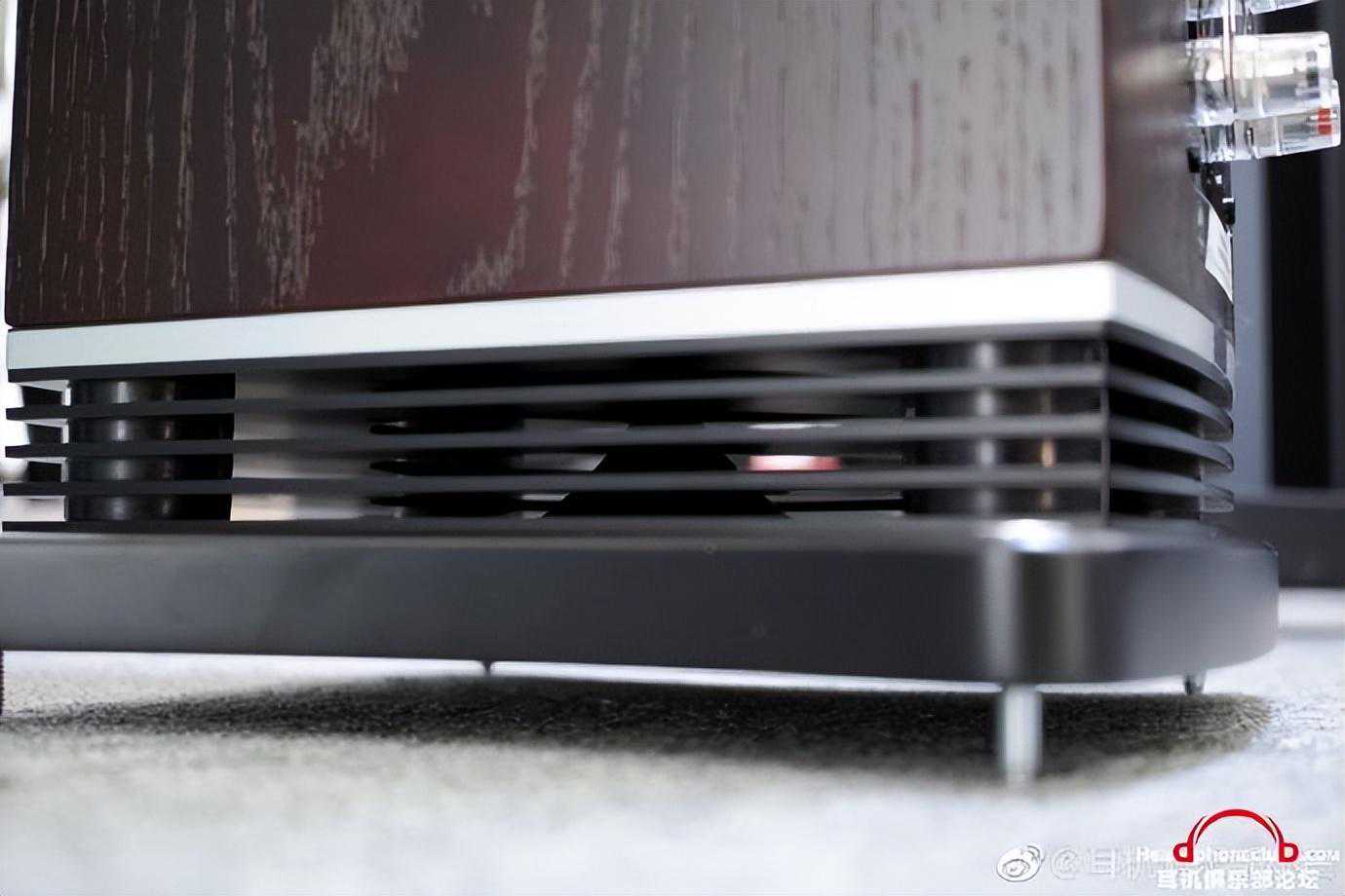 MaxMaud先生也特别讲述了FyneAudio的所谓Bass-Trax底盘技术。对喇叭来说,底盘是非常重要的,就好比摄影中的三脚架,必须把相机撑稳固、丝毫不动,才能得到清晰锐利的成像。喇叭也是一样,如果底盘不够稳固、工作时喇叭会晃动,那么是不可能得到清晰结像的。所以FyneAudio的喇叭都拥有坚固的底盘,并且在这个部位使用了向下倒相、360度气流均匀扩散和排出的Bass-Trax技术。向下倒相使得喇叭便于摆放,可以离墙较近而不影响声音,喇叭工作时的倒相气流通过一个类似金字塔形状的设计360度全方向均匀排出,有利于获得丰满而圆滑的中低频响应。顶级的F1拥有最为厚重的底盘设计,而我玩过的平价型号F500、F501都有着类似设计的Bass-Trax底盘。下图分别为书架箱F500和小落地F501的底盘部分。