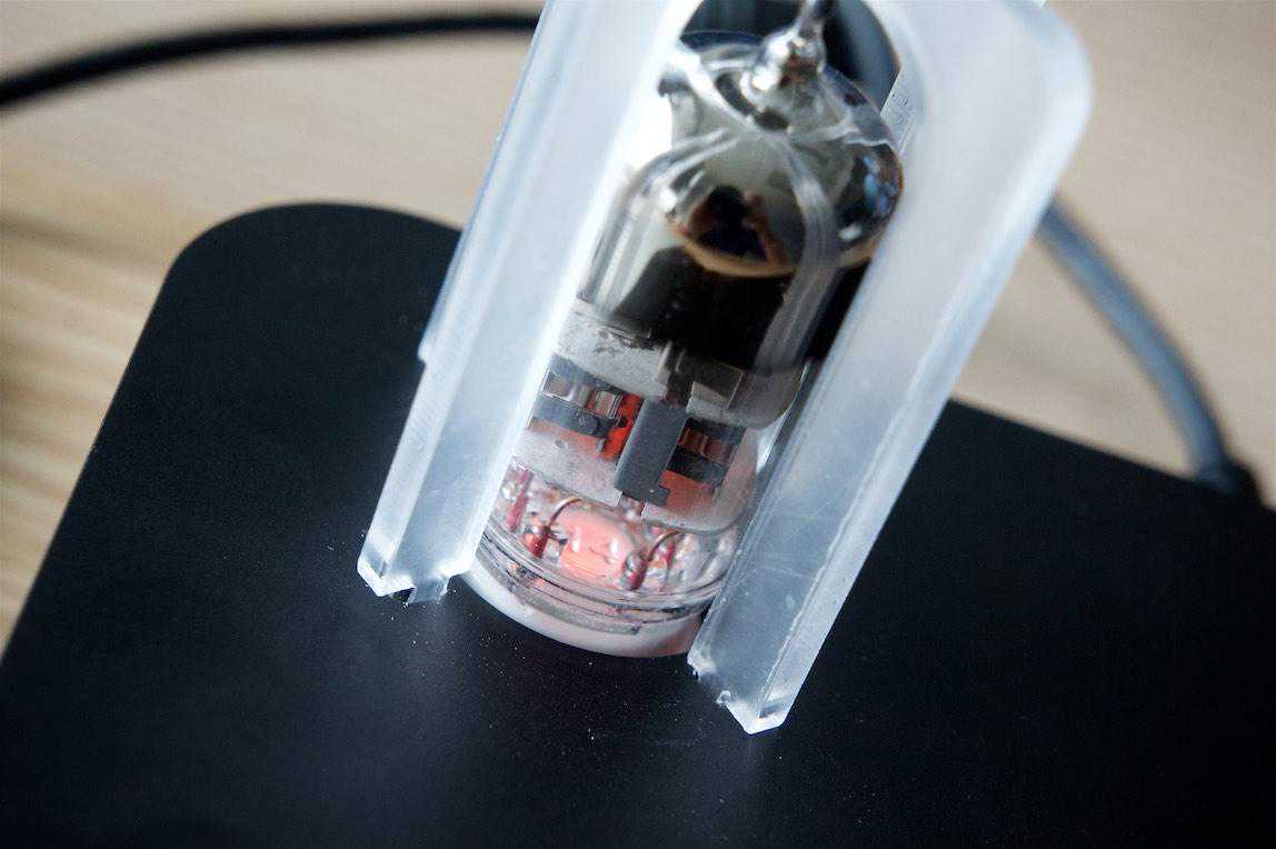胆管本身一方面比较脆弱,另一方面工作时温度也比较高,因此AUNE为其配备了由2片亚克力板组成的保护架,虽然不算高档,但对于初次接触的人来说,看着像个小灯泡的胆管发出红色光芒时,还是挺能撩妹的。