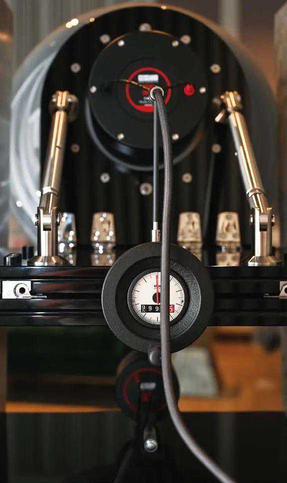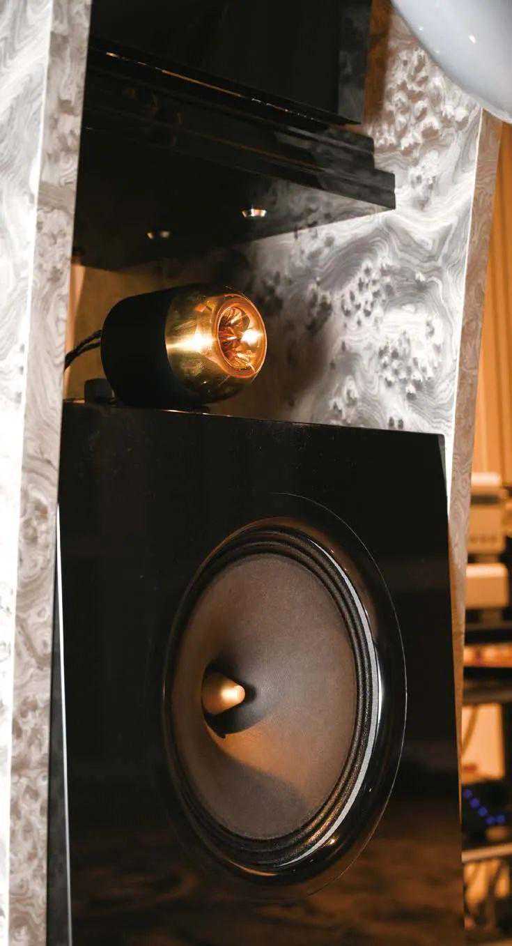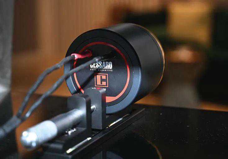 ●黄铜超高音号角是装在轨道上的,通过千分尺刻度做前后移动,可根据实际聆听距离做精确的相位调整。箱体背后能看到中音号角有金属杆支撑,这次的升级版还在螺杆扳手上设计了非常漂亮的类似超级跑车才有配置的表盘,这可不是用来装饰的,这也是Cessaro的奥秘之处,可以精确显示中音号角调整的上下俯仰角度和相位,德国人严谨的工匠精神不仅展现的看得到的地方,看不到的地方一样严谨,这已经是工业加艺术的升华了。