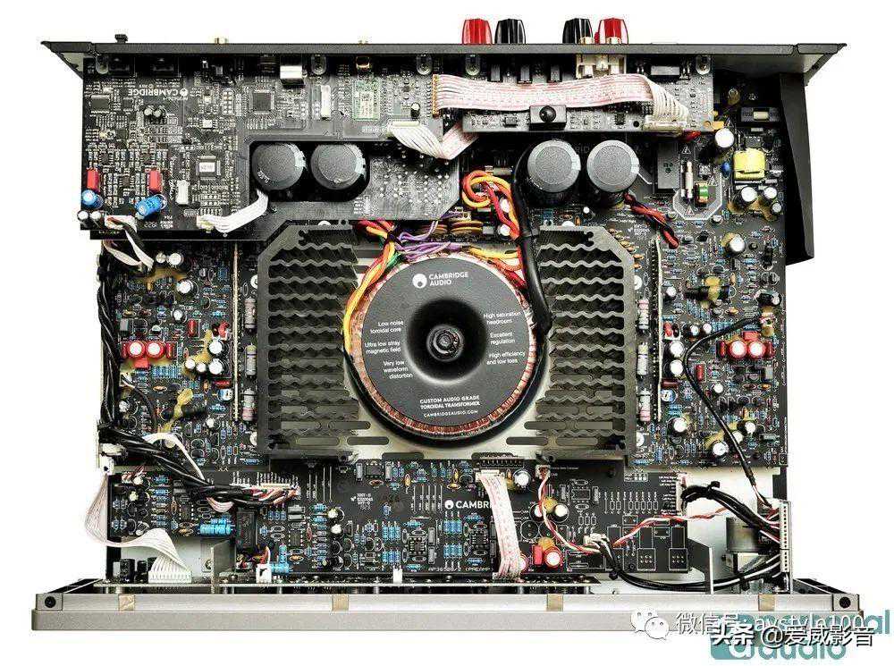 接下来是另一位主角CXA81登场,它是CXA80的后继机,两代的整体格局十分相似,例如机中央是环型变压器,左、右是镜像对称的放大线路,实现双单声道架构,又可以平衡机身重量分布。此外,两者皆有XLR输入和两组喇叭线接线柱,同样是ClassAB放大,8Ω负载时,每声道输出为80W。