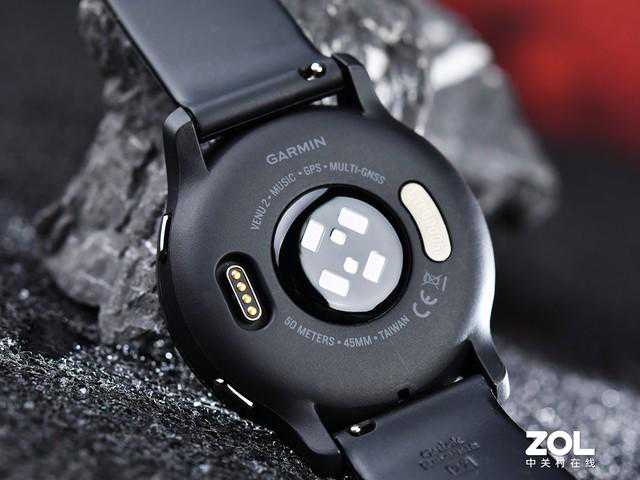 把视线转移到腕表背面,除了显眼的生物数据监测传感器,我们还能看到音乐、GPS、MULTI-GNSS(多卫星系统定位)和50米(防水)等字样。