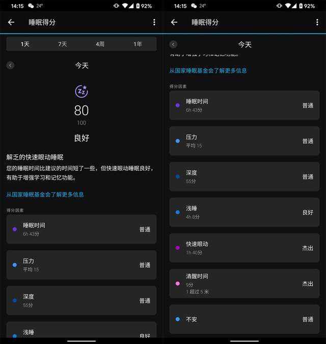 在睡眠监测一项中,GarminVenu2不仅会记录各项数据,还会根据这些数据给用户打一个总分,更加直观。