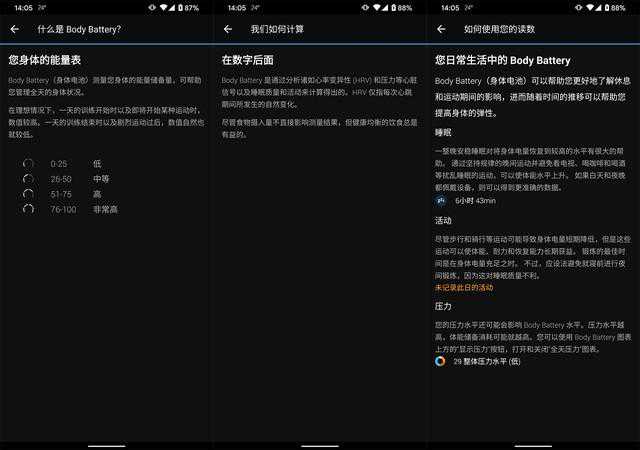 用户可以在帮助界面快速了解特定数据背后的专业意义,包括这些数据是什么、是如何测量的、多少算是正常等。比如我们在上文看到的健康快报解释,以及下图关于“身体电量”的解释: