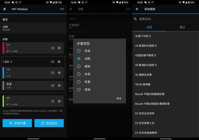 当然,不用手机,只在GarminVenu2上我们也能使用“自由”和“HIIT计时”记录时间和组数,做自己想做的动作,不受限于APP内已有的训练动作。
