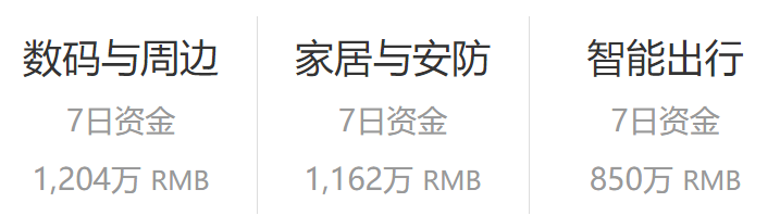 行业分析本周「数码与周边」筹得1,204万,本周位列行业第一,行业前几名的主要是电脑和手机配件,以及少量车载设备。「家居与安防」和「智能出行」分别筹得1,162万和850万位列第二和第三。本周行业总体呈下降趋势。
