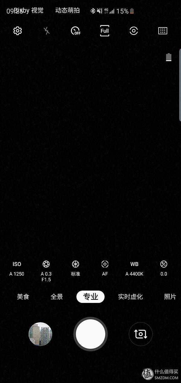 专业模式界面下iso、光圈(1.5/2.4)、快门速度、手动(峰值对焦)自动对焦、白平衡、曝光补偿、对焦点选择(中心/多点)、测光方式,基本涵盖了相机的可选项,有摄影基础的话,用起来会很亲切。