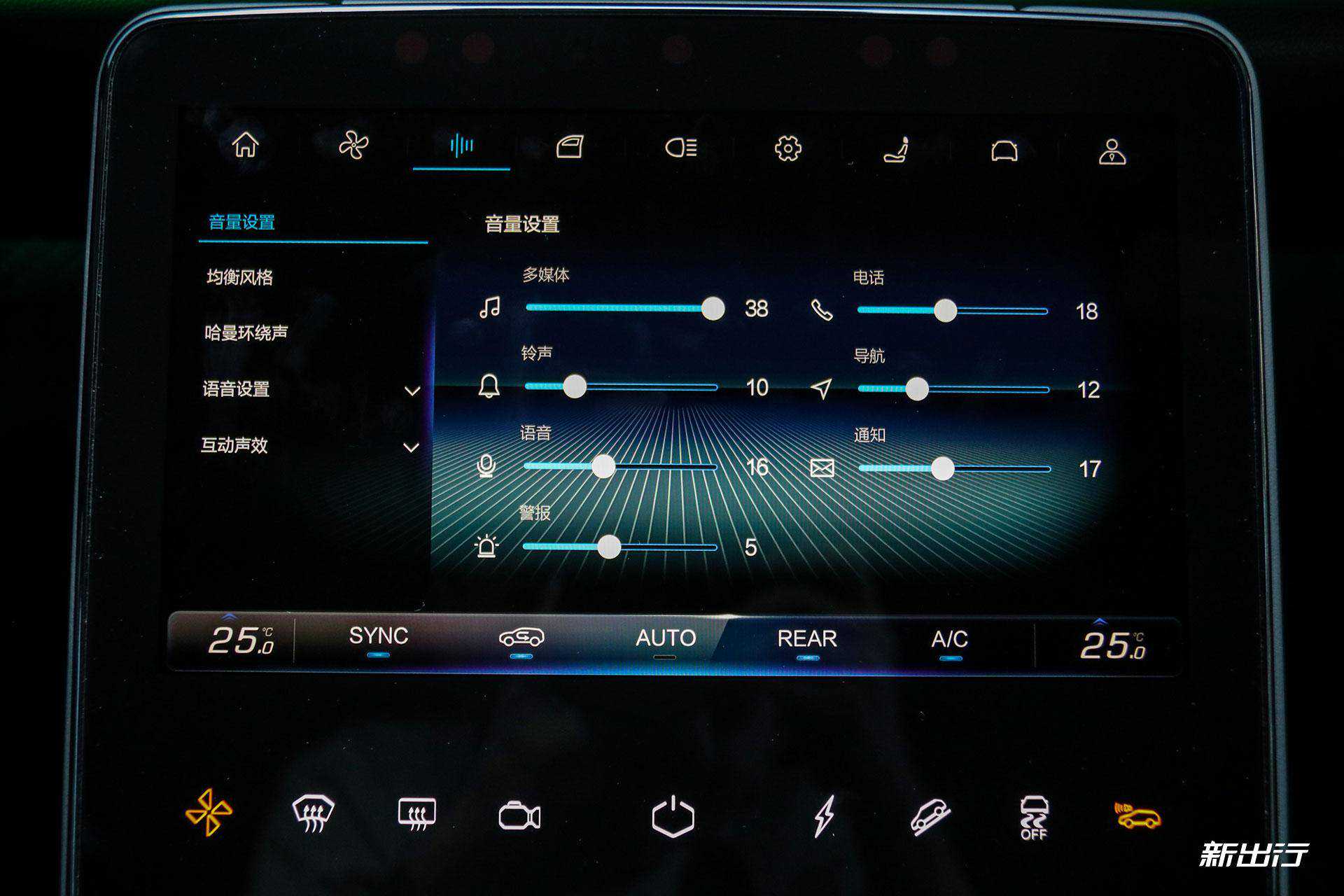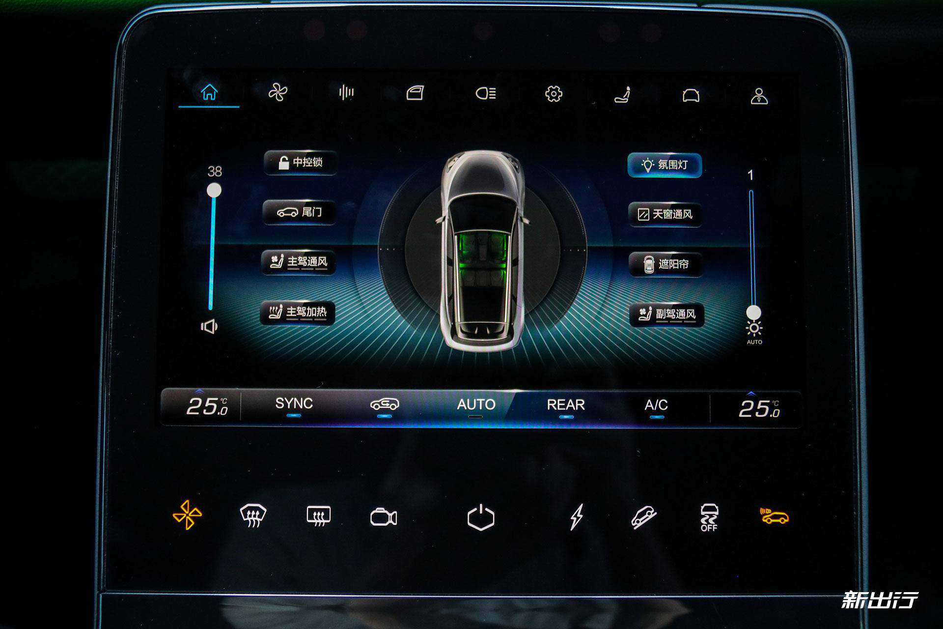 下方的屏幕主要是作为车辆的设置用,车内的所有设置都是通过这里来操作,包括空调、多媒体音效、车窗、电动尾门、灯光等等。