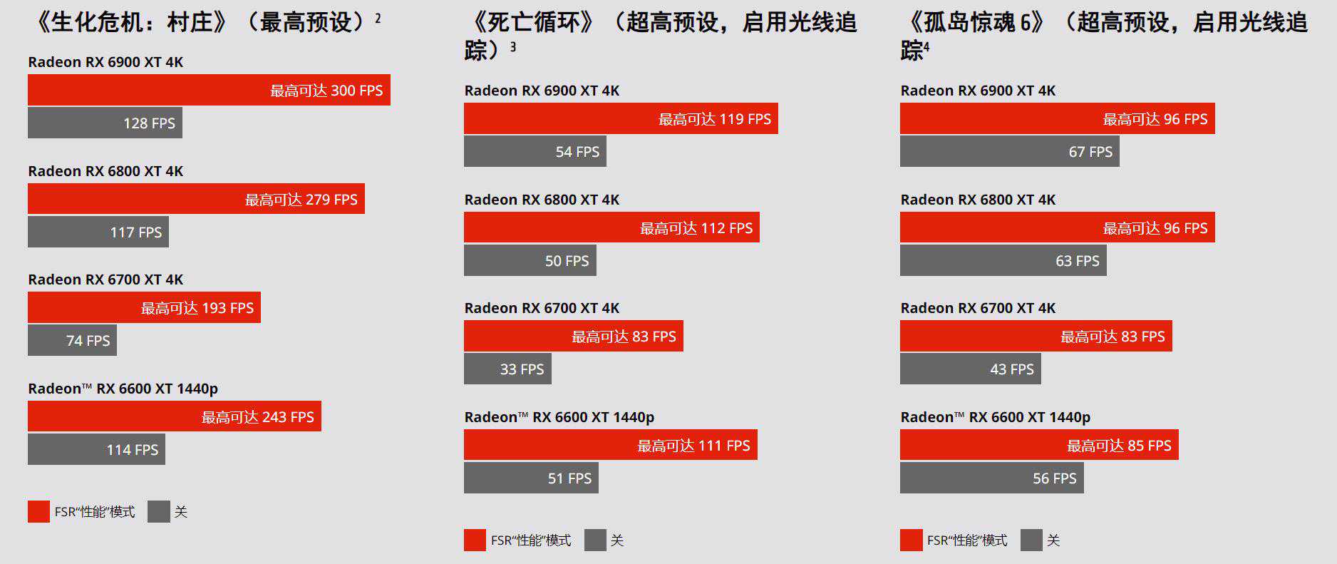 ▼AMD官方给出开启FSR性能模式前后帧率对比