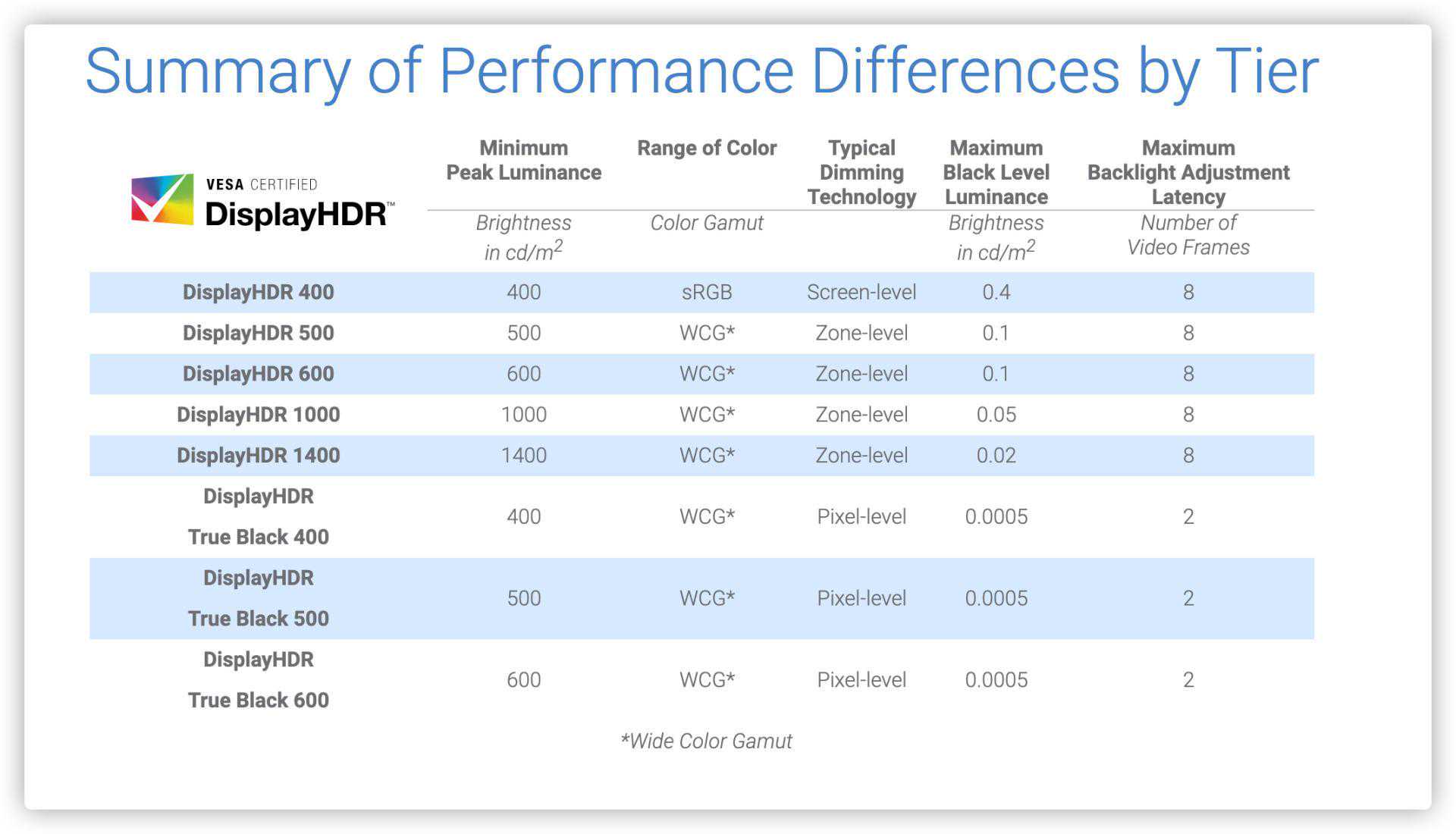 ▼VESADisplayHDR规格差异汇总