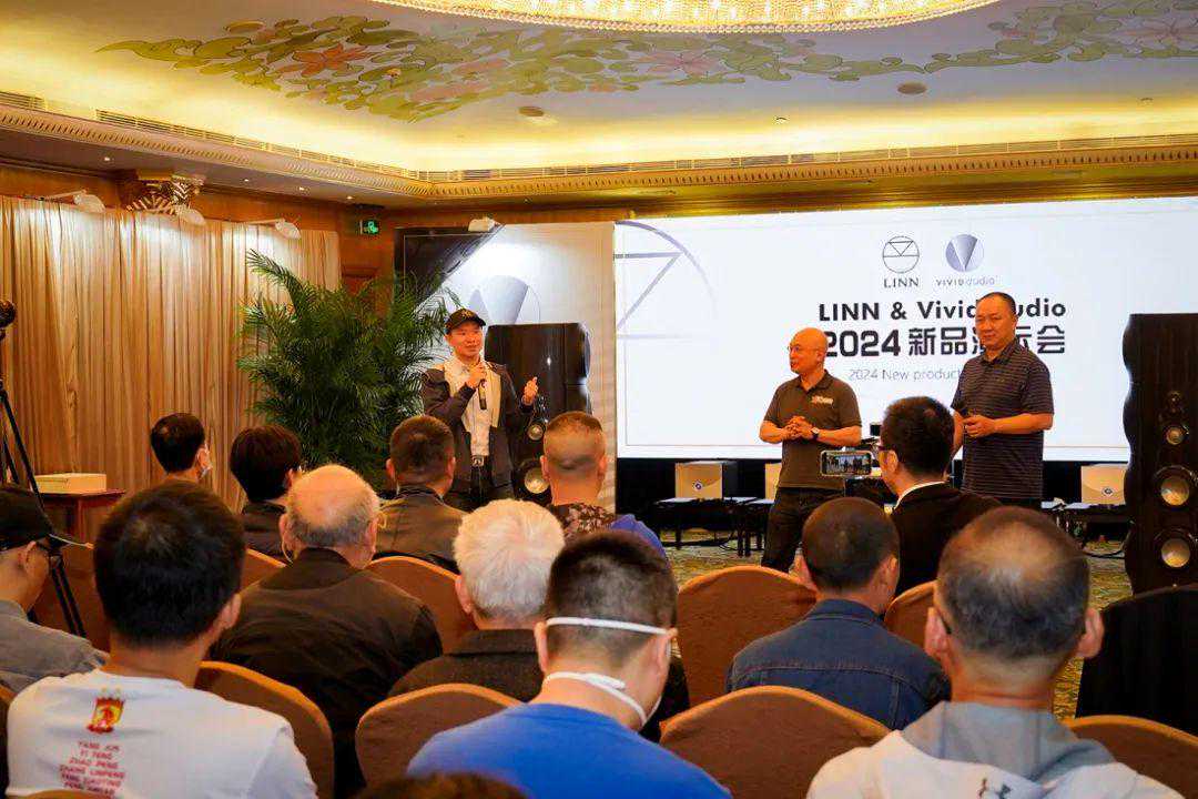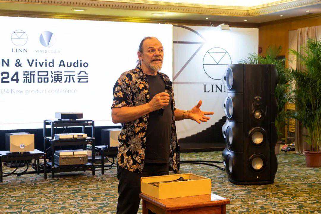 泽森音响特别重视这两个品牌的旗舰级新品发布,选在广州东方宾馆八楼东方厅规格极高,LINNCEOGiladTiefenbrun和LINN全球销售总监SteveCroft、VividAudio总设计师LaurenceDickie以及VividAudio全球销售总监EwaldVerkerk亲临现场分别为各自的产品进行讲解。