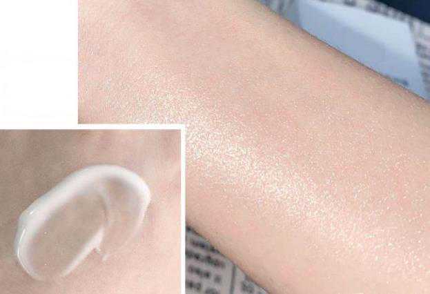质地轻薄,易推开,涂完以后一点也不粘腻,一抹吸收,轻薄透气,且富含牛油果及透明质酸钠,补水滋润保湿、两小时缓解干痒。还有一点特别棒,就是它添加了化妆级的高光云母闪片,让粉质看起来很轻盈细腻,闪闪发光。