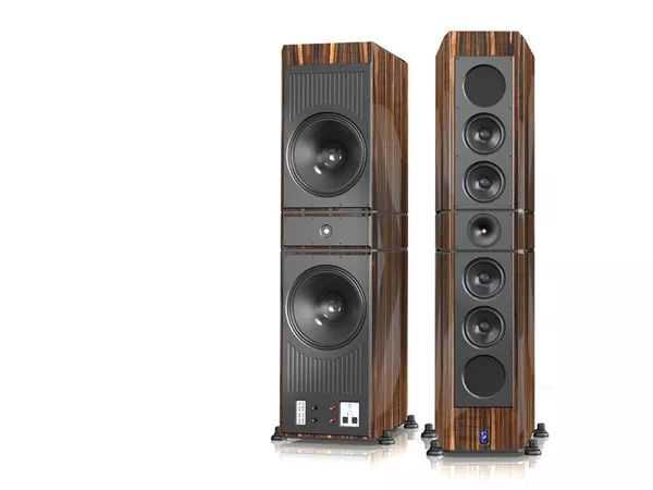 Lanscheaudio推出的这款全新超级扬声器系统,高达2米、重量达550磅的巨型超级音箱,3路分音5单元的主箱加上一组双低音主动超低音的设计。延续了的设计,装载了0.3"CORON等离子弧高音单元,LanscheAudio新设计的这套Corona等离子高音,配合一只大口径短号角,以集中投射声波,增强高频的量感。