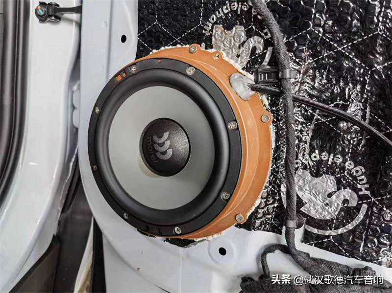 经过车主试听对比,前声场喇叭选择的是一套摩雷柯蕾602两分频,它的高音清澈柔和,有很好的穿透力,声音整体的平衡性很好,对于不同风格的音乐都能从容应对。