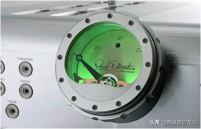 面板上正中央就是那个1780年代就已经存在的Breguet表指针,这支指针搭配Dan的签名,还有0-100的音量指示,显露出古董表的迷人气质。更让人喜欢的是,当您旋转那个大大的音量旋钮(圆窗外框)时,细微的喀喀声与超顺的手感,简直就像再把玩古董表的感觉。这里的喀喀声并非转动级进式波段开关所产生的阶段,而是特别做出来的手感,要让用家有复古的感觉,事实上这个音量旋钮连接的时光耦合器,借着感知旋钮改变的位置而改变继电器与电阻器的组合。此外当您旋转音量旋钮时,那根指针也会跟着改变位置,这是其他前级无法提供的玩趣,DanDAgostino的工业设计真的是第一流的。