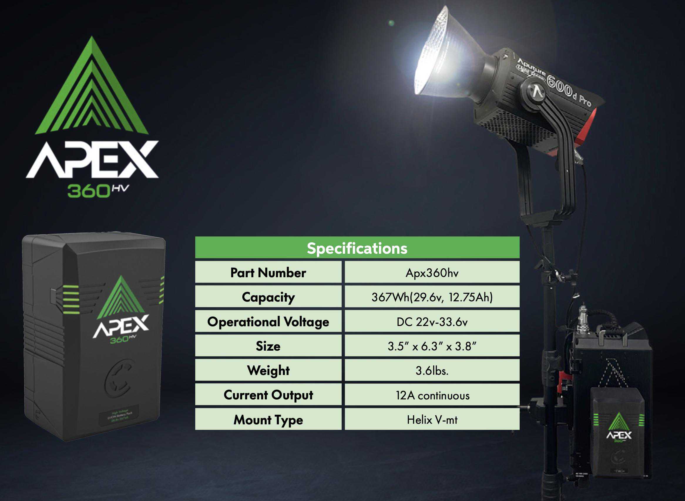 大量高电压LED灯头不断出现,推动移动供电解决方案需求水涨船高,这就有了今天的CoreSWXAPEX360电池。