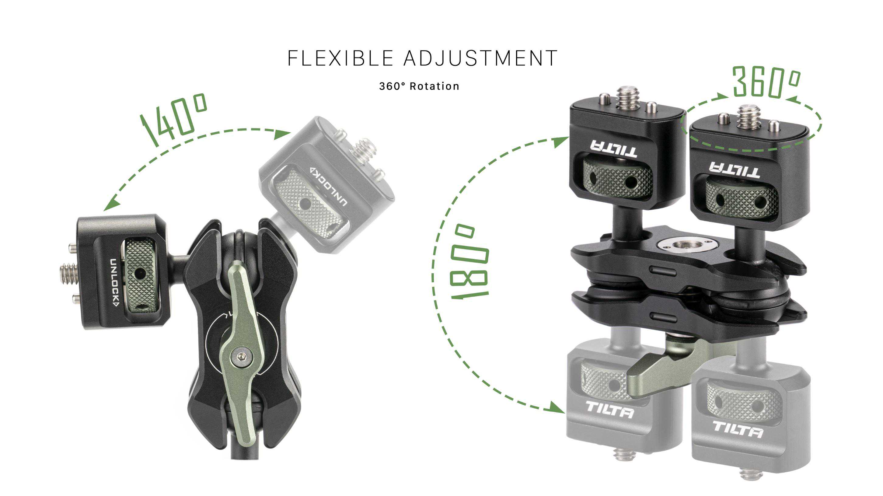 尽管铁头的迷你怪手不是革命性的产品,但它非常好用又有许多选择。我说“许多”,那是真的多。你可以通过更换不同的怪手臂模块,组合出不同用途的怪手。铁头有许多怪手臂模块可供选择:NATO夹、GoPro接口、1/4螺丝座″、3/4螺丝座″、牙盘等等等等。它确实是一套想得很全面的多功能安装工具。