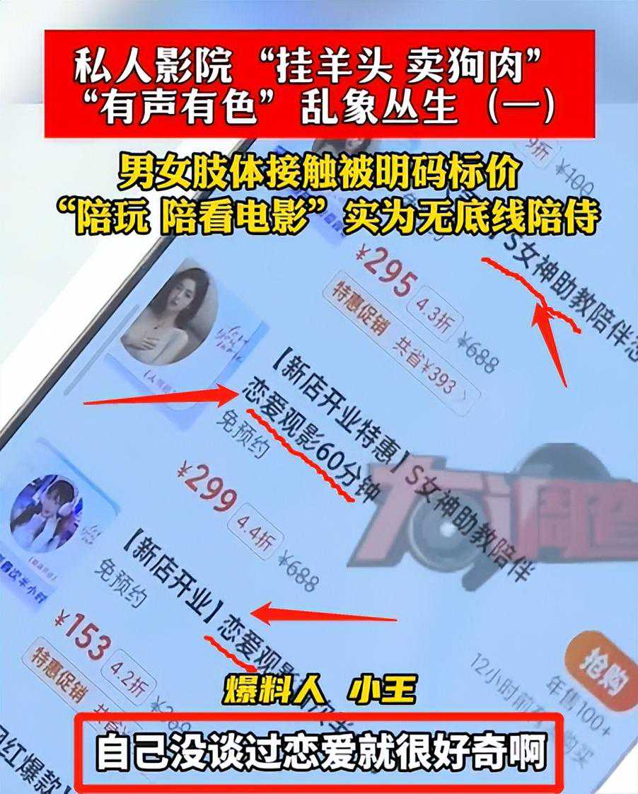 4月9日,湖南长沙的一个爆料人对记者表示,一家私人影院明着是“陪伴观影”服务,实际上竟然“挂羊头卖狗肉”,会有一些十八九的小女孩在进行着有偿陪侍,甚至还可以“真空”上阵。