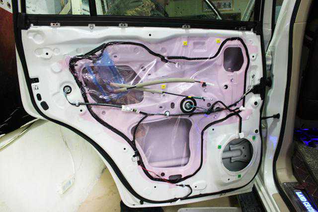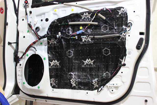 贴好第一层后再门板的外面贴上第二层止震板,技师们对四门板进行双层隔音,四门双层隔音工程主要作用就是给喇叭创造了良好的工作环境,让喇叭有个相对优良的环境中发挥。也给喇叭创造了一个效果发挥的空间,隔音后的门板类似箱体,安装在箱体的喇叭效果发挥更好,音质效果提升也更明显,中低频更饱满厚实,降低喇叭发生产生共振等。