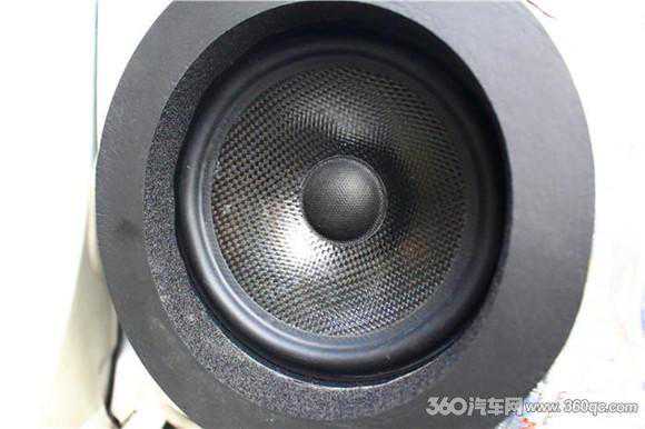 中低音喇叭特写,德国RSRevelation喇叭采用的是铝盆架,这种设计可以使声音更加通透