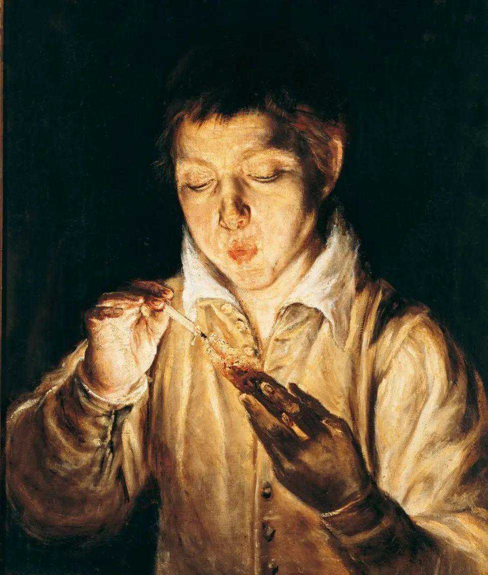 埃尔·格列柯《点蜡烛的男孩》(ABoyBlowingonanEmbertoLightaCandle),布面油画,60.5×50.5cm,1570年