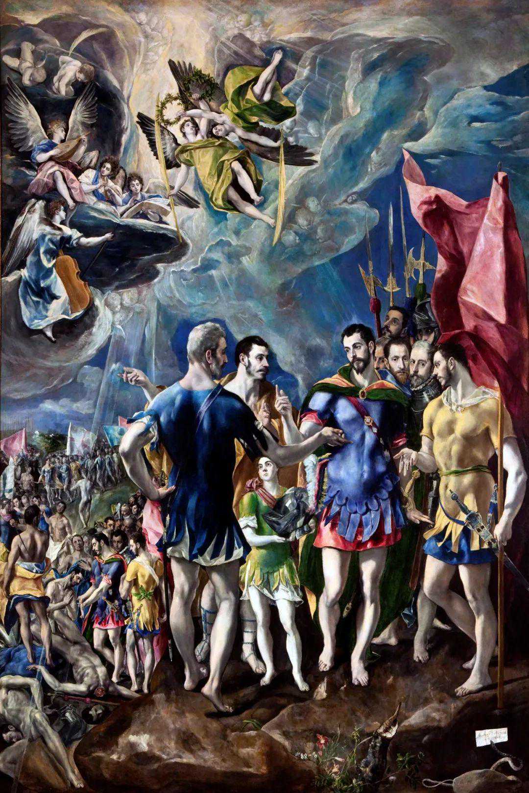 格列柯的出现让腓力二世欣喜不已,他十分器重这位意大利留学的海归画家,即刻将埃斯科里亚尔(EIEscorial)修道院装饰画的重任交付于他并支付了一笔阔绰的佣金。然而现实不尽如人意,国王看到格列柯的《圣莫里斯的殉教》后十分不满,最终将它挂在了分院里。