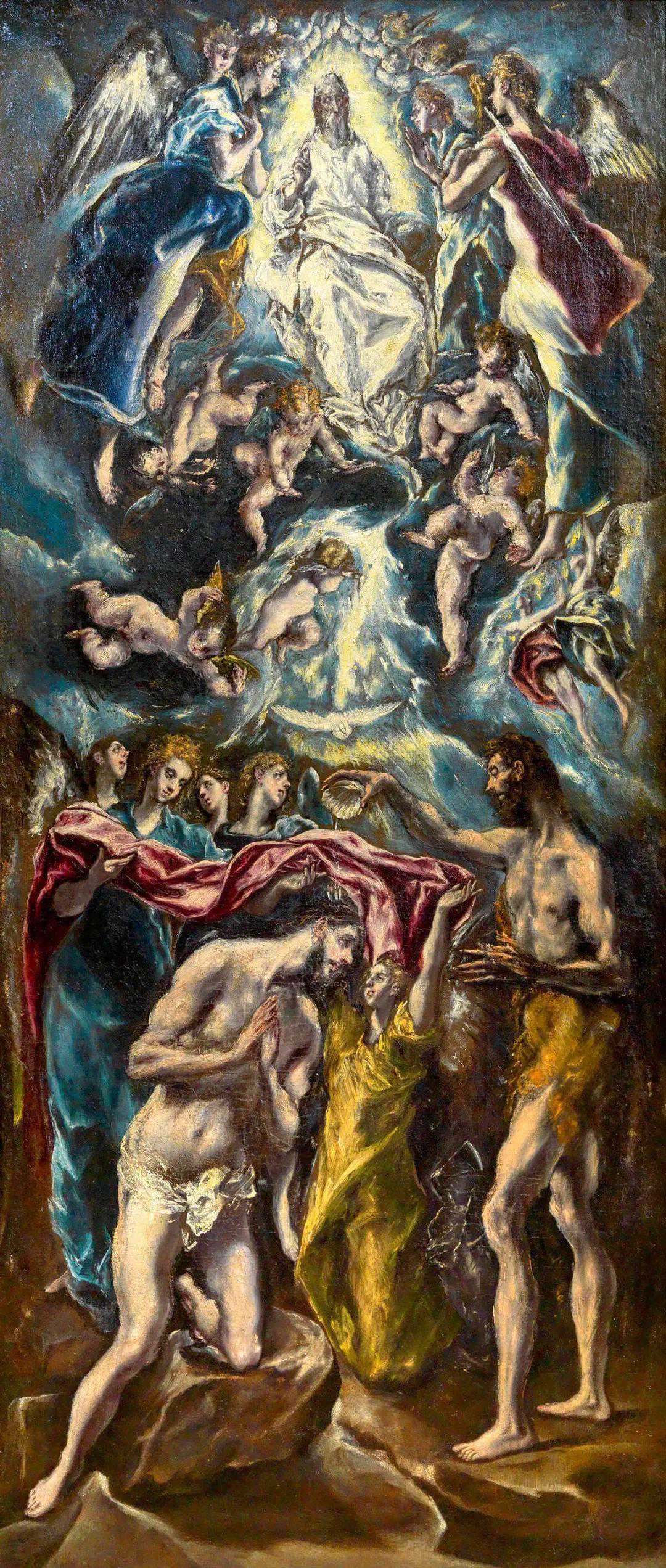 埃尔·格列柯《洗礼》(TehBaptism),布面油画,350×144cm,1600年