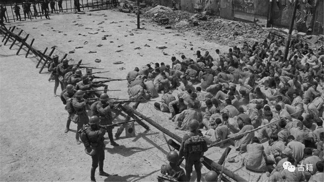 到了目的地(88师司令部),那儿有一扇大门,两侧都有步哨,我先照了一张全景。进门一看,里面一座兵营式的房子,房子前面是广场。广场上坐着一百来人。他们被反绑着手,像是被俘虏来的伤病员。他们面前已掘好了两个五平方米大小,深约三米的大坑。