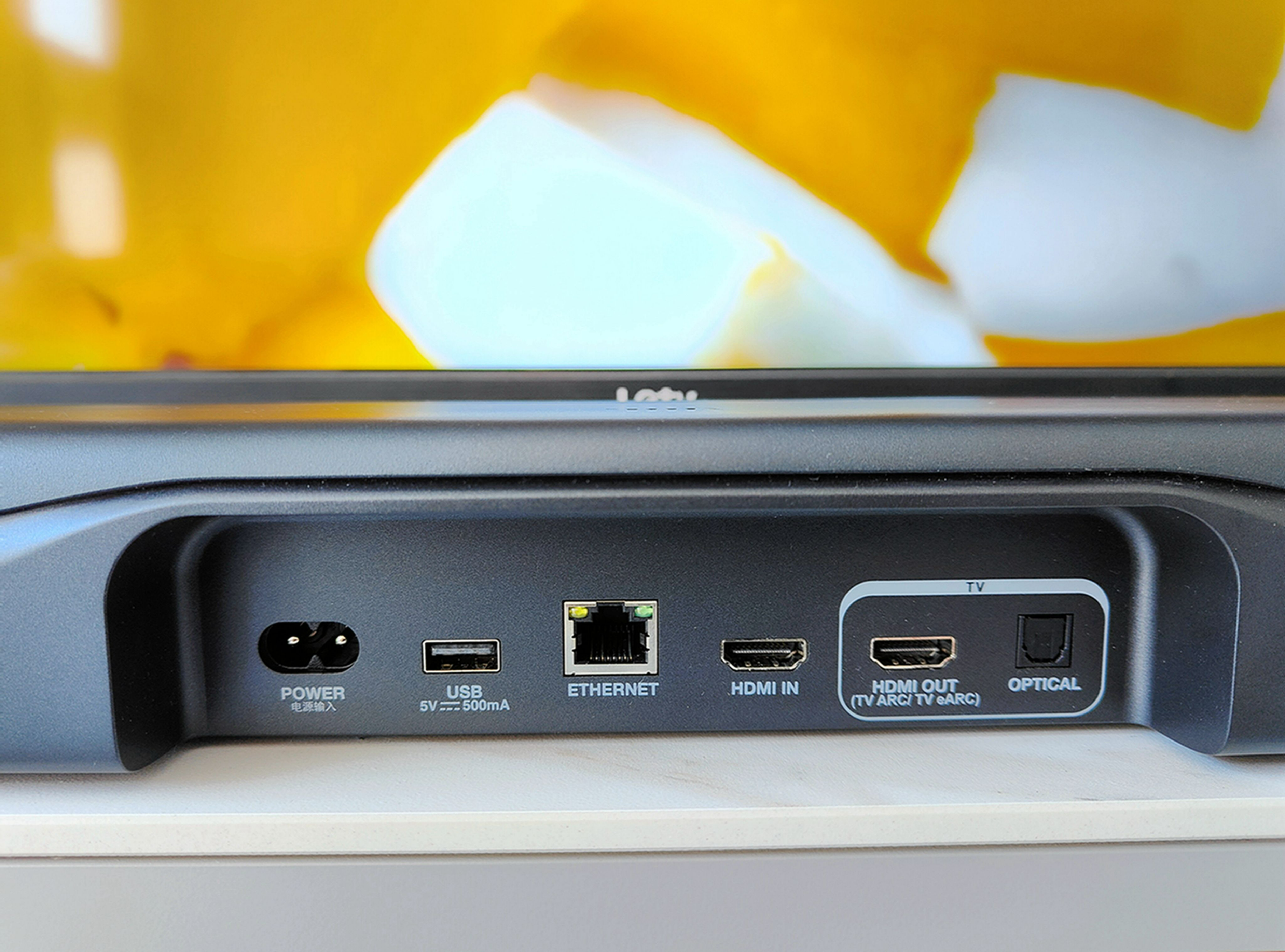 JBLBAR500的安装是做到了“傻瓜式”的,无线连接不需要各种乱七八糟的桥接、排线,直接接入电源自己就完成了部署连接,使用门槛算是相当低了。用HDMI连接上电视,基本就大功告成了。为了方便使用,还配备了专属APP“JBLONE”,可以调配专属音效,也可以兼职遥控器。当然,音箱是配备了实体遥控器的,操作简单这里就不过多赘述。