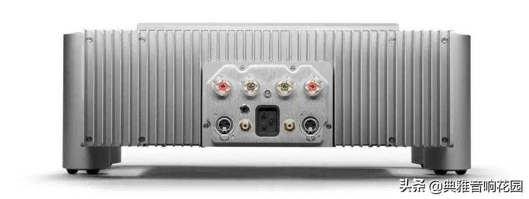 来到背板,可以看到一整排的散热片,将散热片设计在背板与左右二侧后方一小片也是Chord的独特作法,市面上大部分扩大机都把散热片分置左右二侧,很少放在背板上的。也因为背板几乎都被散热片占满,所以喇叭线端子,XLR、RCA输入端子以及触发开关就必须挤在一起。Ultima5内部使用了32个MOSFET,但是即使唱一整天,散热片摸起来也只是温温的,热度并不高,可见散热效率很好。对了,它使用的电源线却是20安培的规格,想来瞬间电流应该会很大,也就是说动态范围可以很宽。为此,代理商特别附带一条MonitorAcousticsMA220020安培电源线。