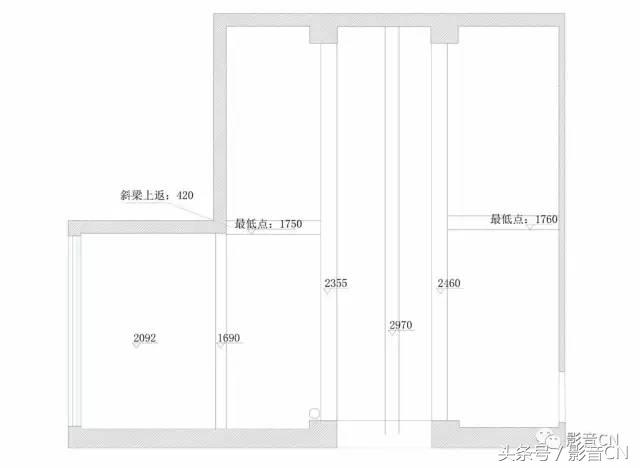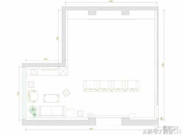 本案业主,他有个自住及会客一体的房子,在其他空间都有规划的情况下,只剩一个阁楼想用来做影院。大部分人都知道,一个合格影院,先从比例尺寸开始,若在一个恶劣的环境,不打算大手笔投入又想自如观影,设备、装修二者都需仔细斟酌。