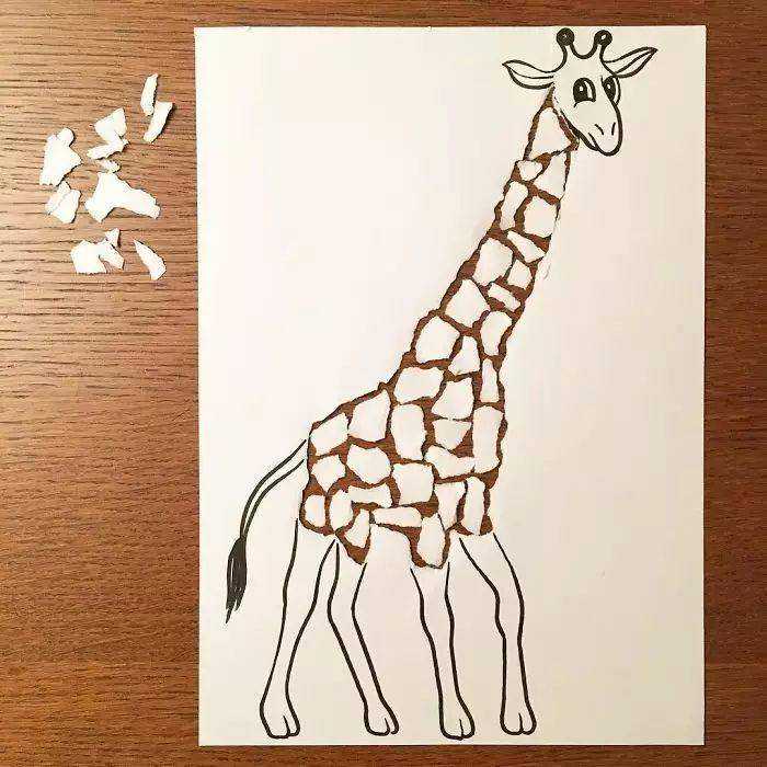 就连撕碎的纸片都能用来拼凑长颈鹿的色彩
