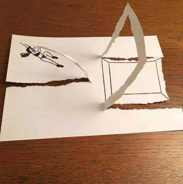 来自丹麦的插画师HuskMitNavn,他突破了“二维空间”的限制,在纸上「撕」出了三维立体的效果。