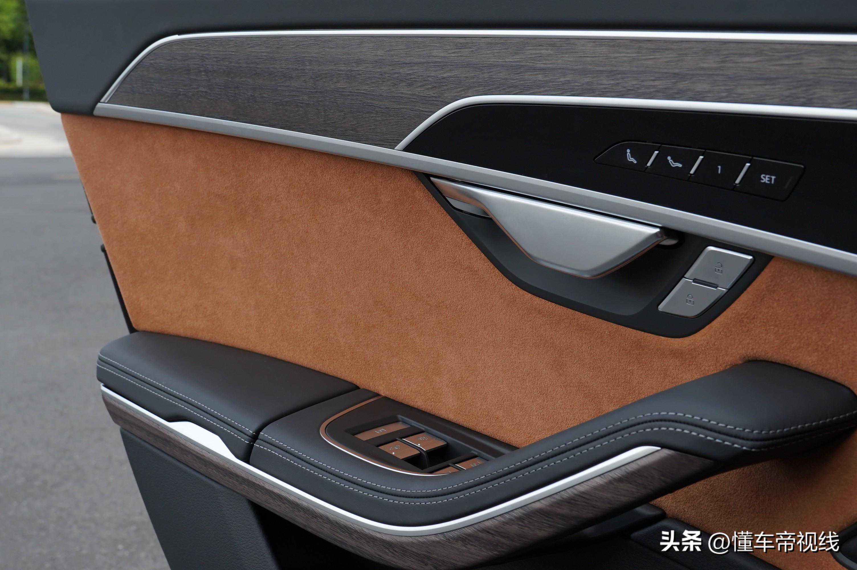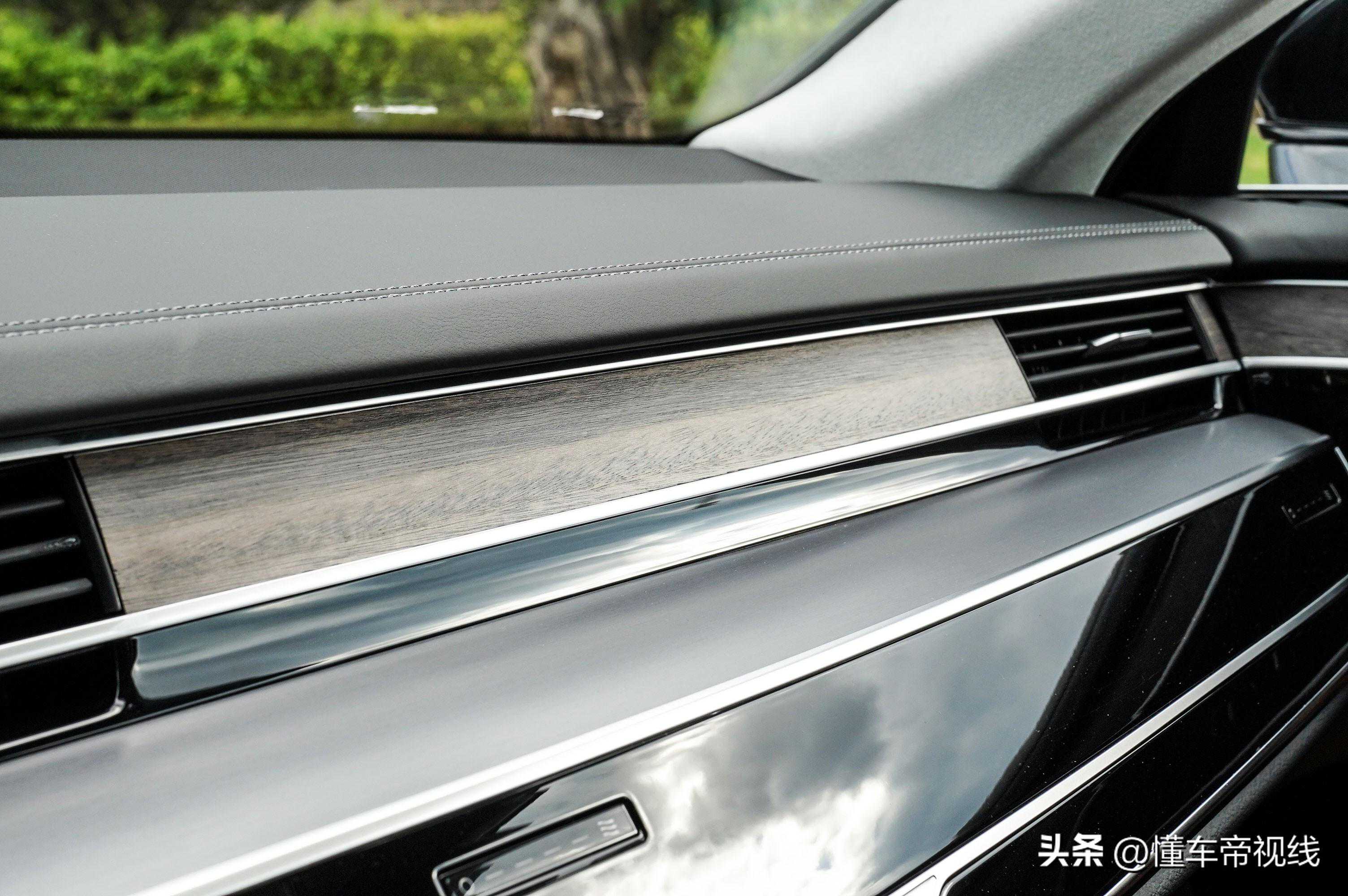 除此以外,作为旗舰车型的奥迪A8L更多的是以豪华材质营造舒适氛围,来打动驾驶舱的驾乘者。与奥迪标志性的高亮黑钢琴烤漆饰板搭配,木纹饰条的出现冲淡了“冰冷科技”的感觉,增添了自然带来的轻松氛围。这种材质虽然“不太上镜”,但当你真正地坐进车内,或许会对它逐步提升好感。