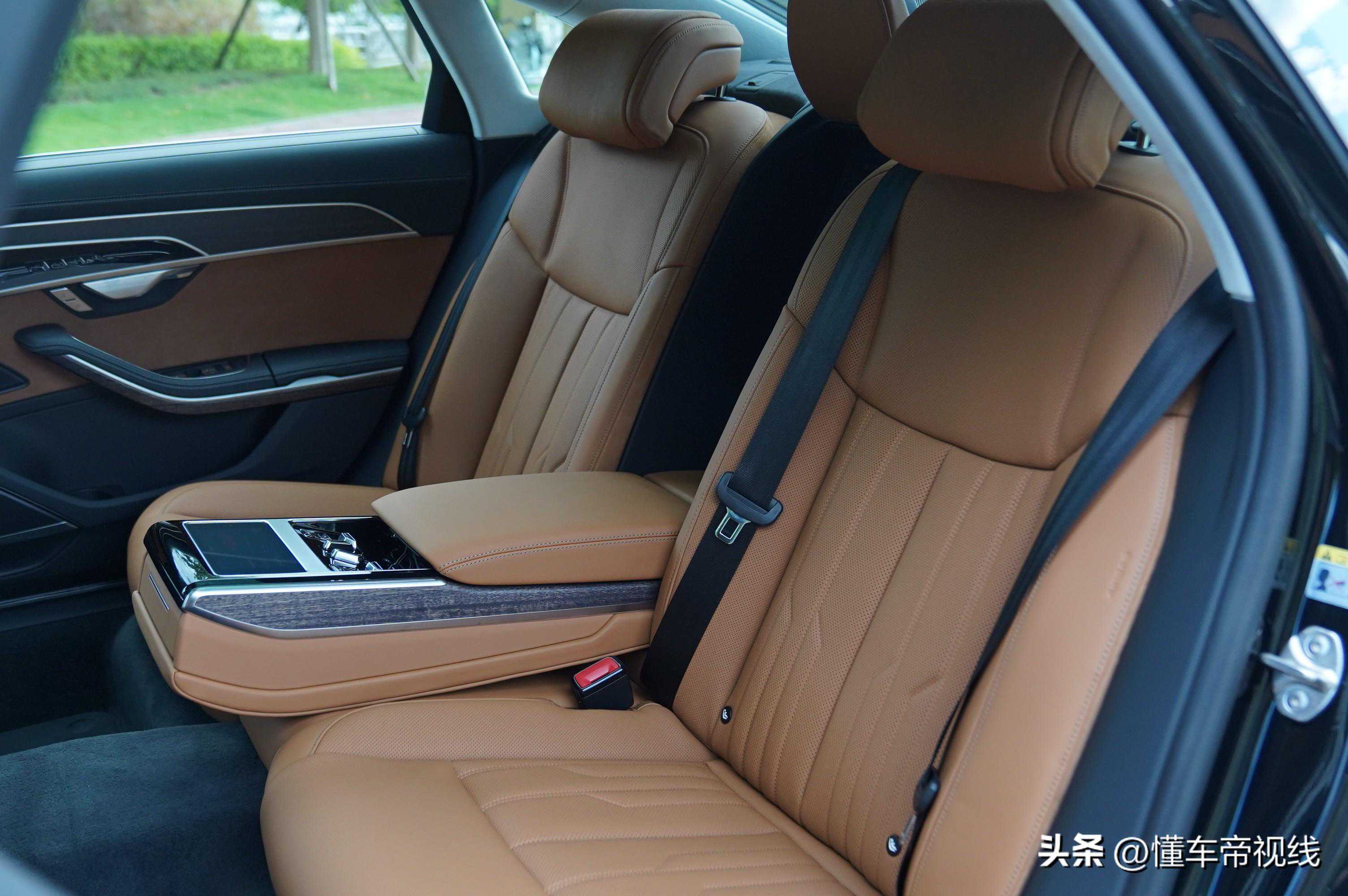 后排空间自然是其设计重点。此次试驾的奥迪A8L55TFSIquattro旗舰型,配置的是5座版“豪华头等舱座椅”,包含后排智能触控系统、舒适躺椅、22向电动可调,带记忆功能前排座椅、前后排座椅通风和按摩功能、后排信息娱乐系统。