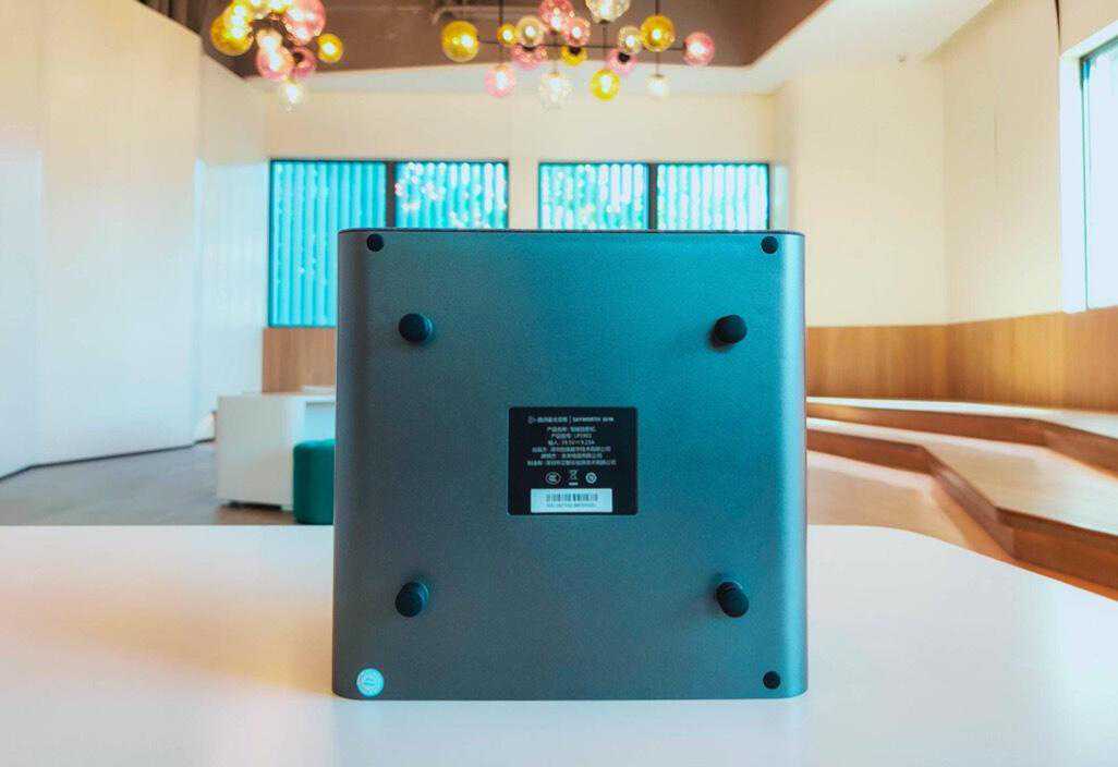 底部是四颗凸起的底座,能够将机身抬起7mm,底座不可拆卸,这也就意味着腾讯极光投影S3在没有额外配件下并不能实现倒装。