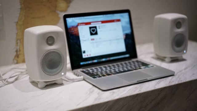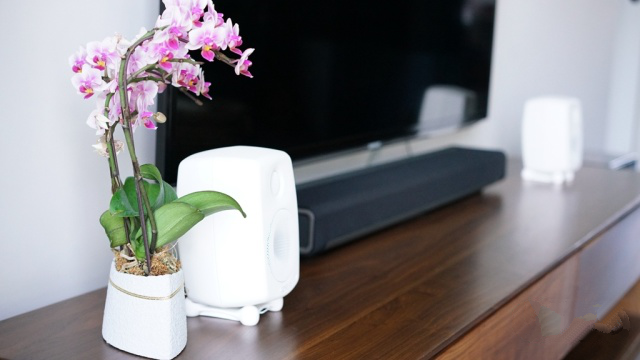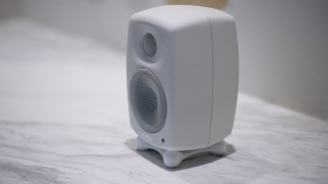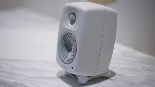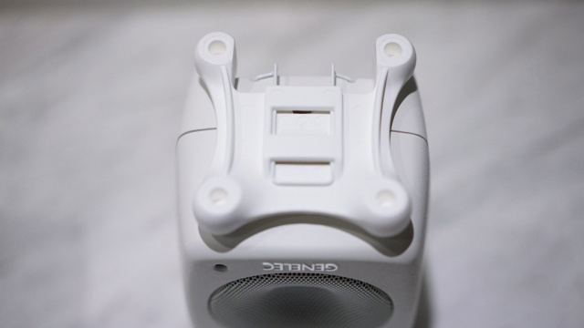 GOne则昂起了头。满足了不同的听音环境和角度。例如我放在地台上听曲子的时候,坐的位置高于音箱,此时就可以让GOne抬头。这方面真力Genelec考虑的甚是周到。
