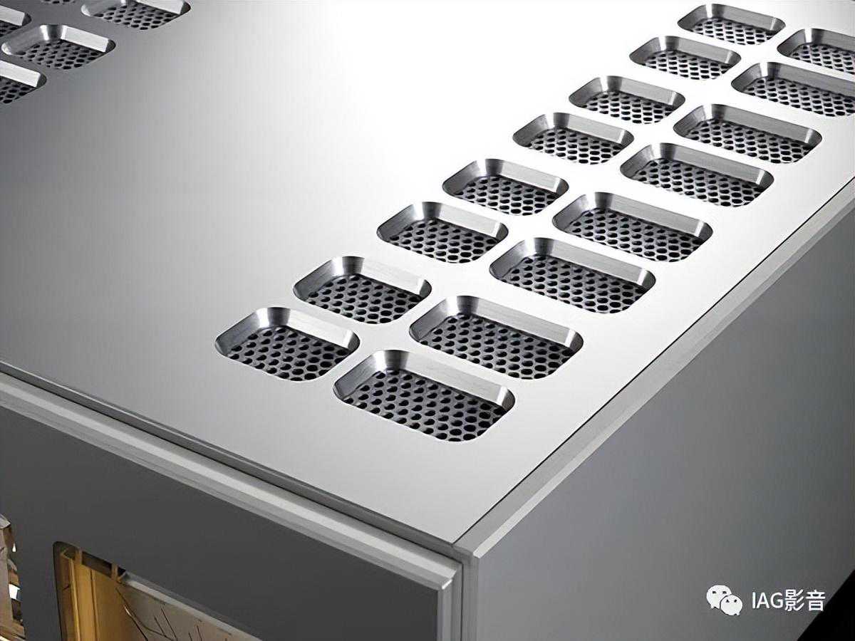每个通道的输出级使用八对互补的三极管连接晶体管。该电源采用低损耗京瓷肖特基整流二极管、带扁平铜绕组的低损耗EI型电源变压器和80,000µF滤波电容。电流通过粗铜母线传送到每个通道的输出晶体管;另一条母线通过高质量继电器将设备的推挽输出连接到扬声器接线柱。该继电器有四个并联的开关元件,以降低接触电阻。驱动级的电源轨采用高性能稳压芯片和精选齐纳二极管,后者由美国威世公司制造。更值得一提的是印刷电路板上0.1mm厚的走线竟然是镀金的。