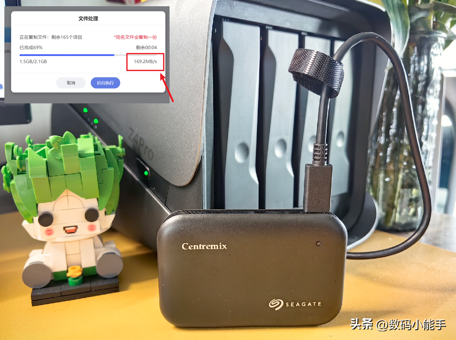 同样,用在NAS上它也是一款非常给力的备份神器。很多人应该都知道数据备份的321黄金法则,所以在本地,我不可能把重要的数据都寄托于NAS硬盘,而会另外备份一份到我的移动硬盘。这款芯点子x希捷联名款CS1000高速移动固态硬盘作为高速存储设备,随便都能跑满NAS硬盘的上限,用起来是毫不拖泥带水。