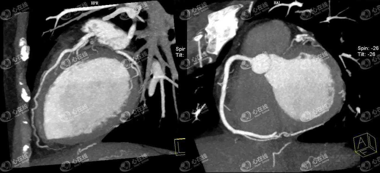 进一步查心脏超声、心脏增强核磁、冠状动脉CTA(图2)、主动脉CTA、肺动脉CTA均未见明显异常。