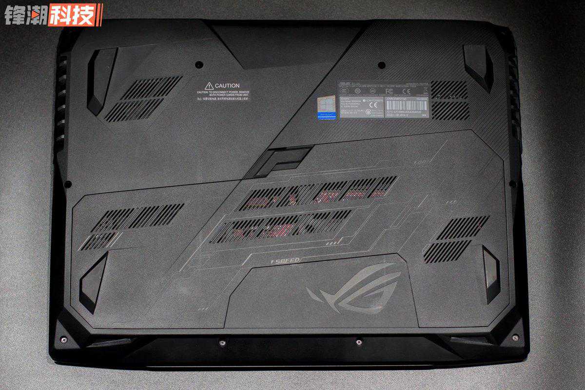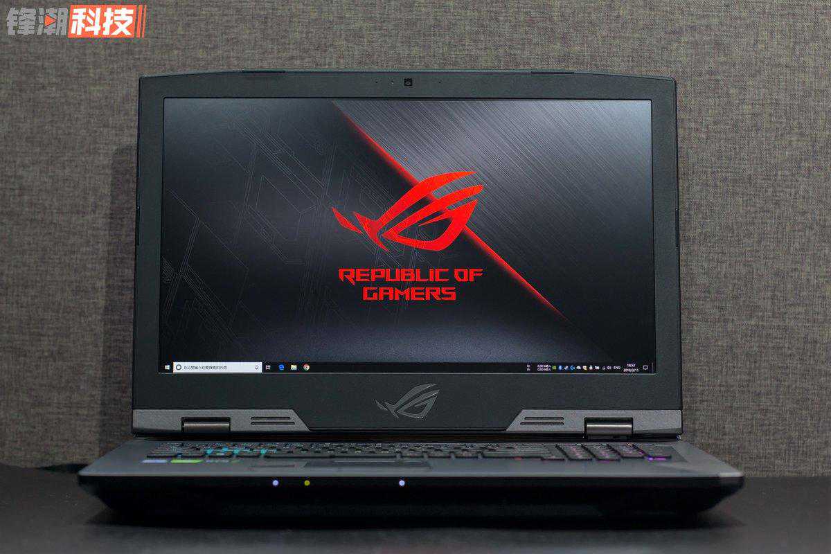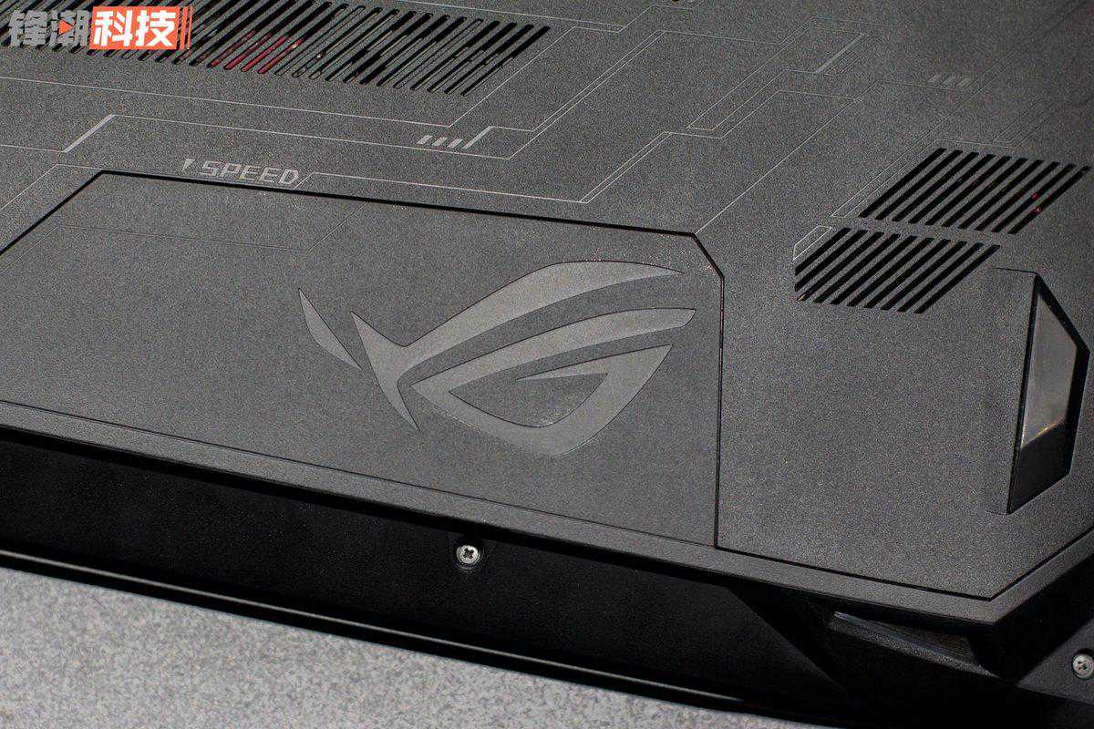 打开屏幕,17.3英寸的屏幕映入眼帘,对于这类型的笔记本来说,就不要奢求窄边框了,做好散热才是王道。屏幕上方是摄像头以及麦克风,下方又是一个大大的ROGLOGO,左右两边的开孔,经过仔细检查,只是装饰而已。