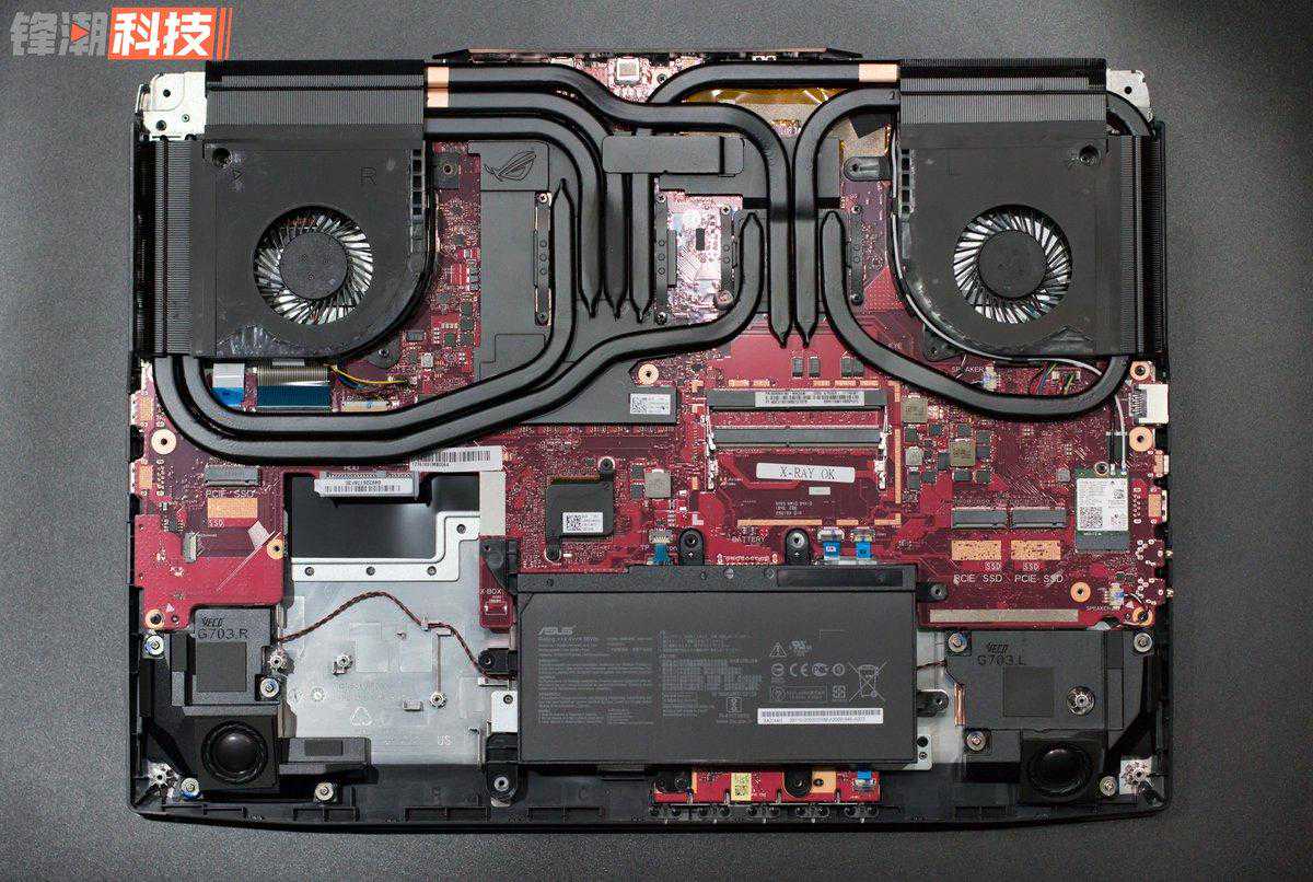 D面完全拆除如下图,散热模组采用抗氧化处理,共8热管双风扇,电池容量为96Wh,还是能够带上飞机的。