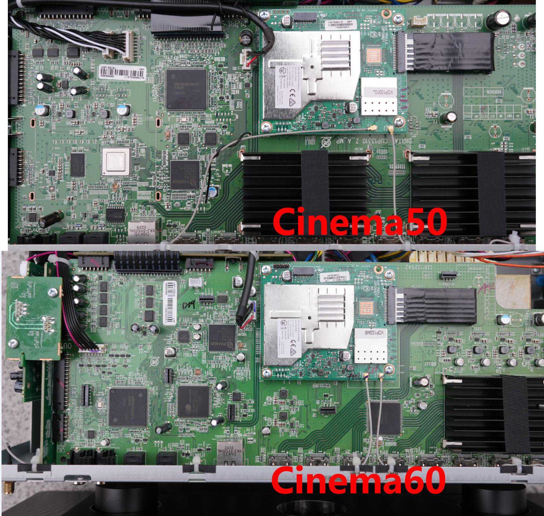 但是Cinema系列的解码板,电源部分肉眼可见的不一样了!虽然这两代都是8K产品,但很明显这已经有第一代和第二代的差别,AV功放最重要的解码板重新设计!