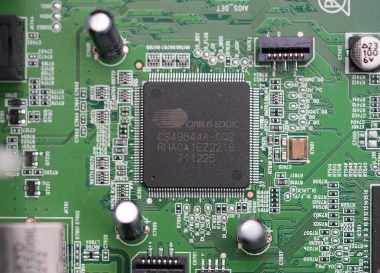 对比解码板这些负责DAC,ADC和DSP运算的芯片,你会发现虽然两台布局不同,但主要的区别是来自DSP芯片!
