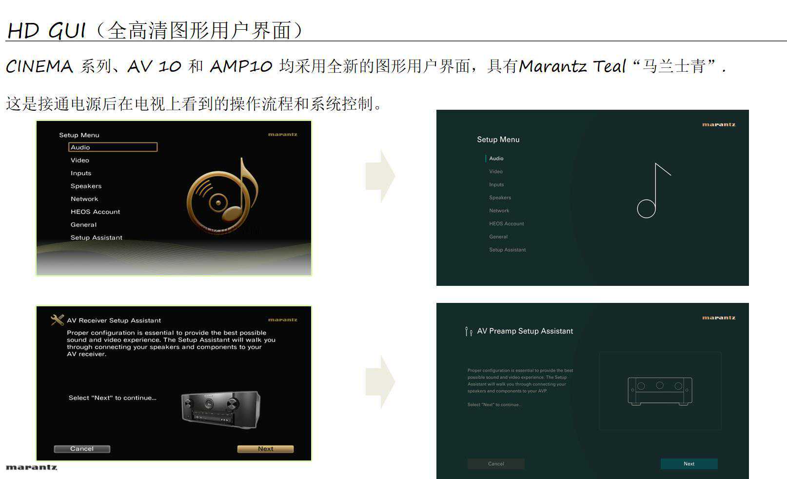 Cinema50和60的UI马兰士不仅仅是给Cinema系列全新的外观,内在的显示部分也完全重做了,终于是高清界面了。